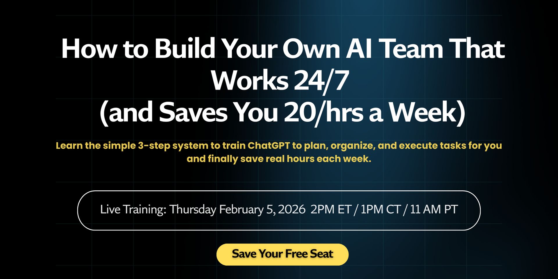 ![]() How to Build Your Own AI Team That Works 24/7 (and Saves You 20/hrs a Week) February 5th | 2pm ET | ![]() Create Engaging Content On LinkedIn To Grow Your Business using AI February 3rd | 3pm ET |